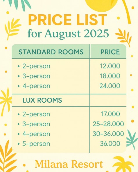цены могут быть изменены в любой момент, уточняйте при бронировании