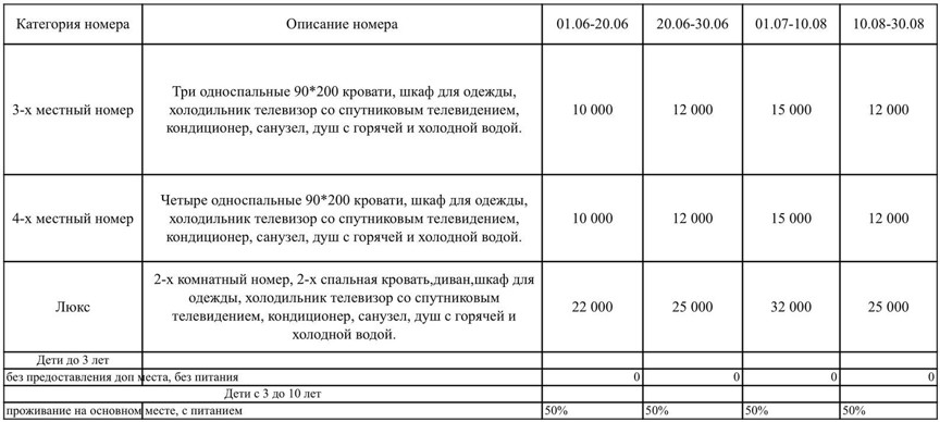 2х, 3х, 4х местные номера. До береговой линии 200 метров