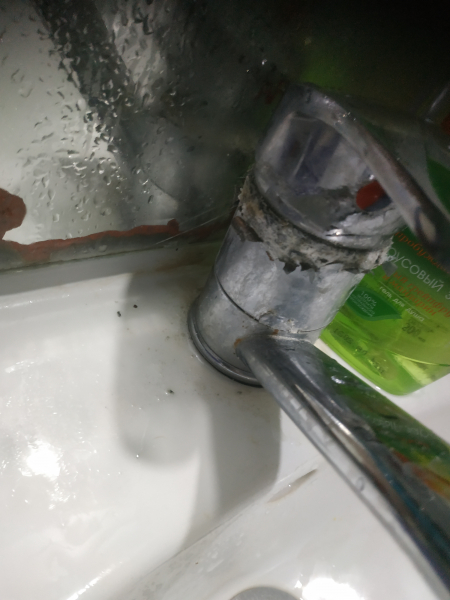Плитка в пятнах каких то везде. Зеркало в ванной убитое.