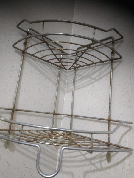 В душе перекладина для шторы стояла в углу, а сама штора лежала на сушилке.