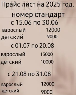 цены могут быть изменены в любой момент, уточняйте при бронировании