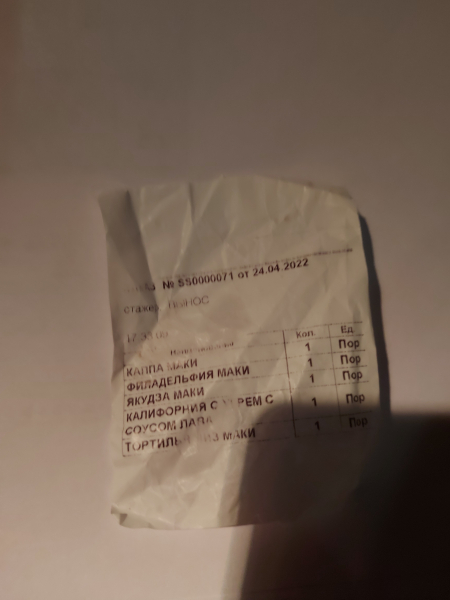 Добрый вечер! Сегодня делала заказ в вашем ресторане на Достык. Ребенок съел ваши 2 суши отравился. Больше к вам не ногой. Всем своим знакомым я больше ни когда не буду рекомендовать ваш ресторан. Качество упало, цены выросли еще и травить стали. Чек как доказательство предоставляют