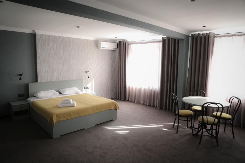 Очень хорошо Мы проживали в номере люкс с двумя отдельными кроватями и диваном. Номер был очень большой. Кровати и диван удобными. В номере было тепло. Каждый день давали бутилированную питьевую воду. Санузел тоже был большой. Везде был плохой напор воды. Скорее всего забились фильтры. Требуется внимание сантехника. https://www.booking.com/hotel/kz/renion.ru.html?aid=8130309