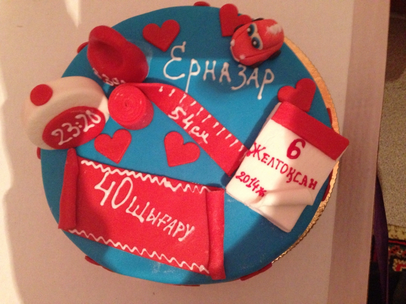 Добрый день!заказал торт для сыночка 40нан шыгару .нарисовали как нужно было выглядит, грамм ,рост вес и когда сын родился! 6 декабря.во первых опоздали и во вторых не 6 декабря написали а 4 го декабря !попросили изв... Пришлось поехать цех пере делать