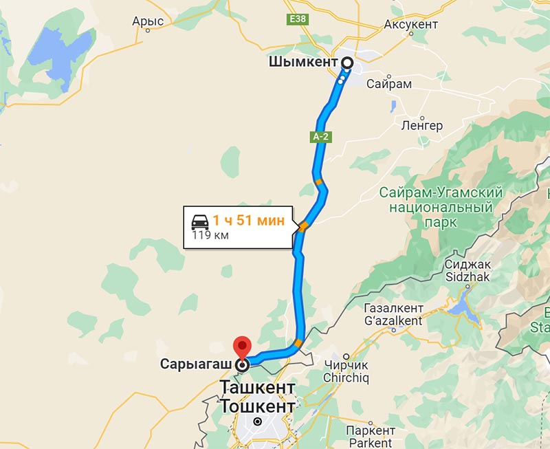 Шымкент Сарыагаш расстояние по автомобильной дороге