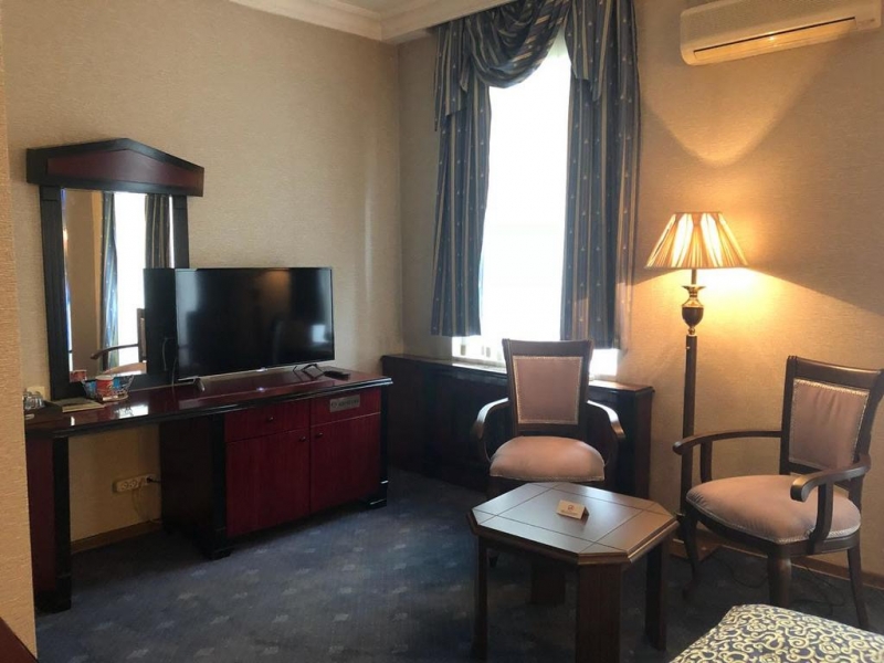 В отеле Амбасадор в центре Алматы все оказалось отлично - обаятельная девушка на ресепшн, помогли донести багаж до номера, пришлось подождать ключи. В номере порадовало мягкое освещение, высокие потолки, кровать, много кабельных каналов, стабильный интернетно почему-то номер давно не проветривался. Еду в номер доставляют подолгу, чем нервируют, цены дороговаты. А так - все в шаговой доступности.