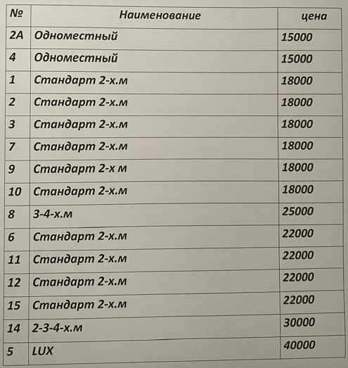 цены могут быть изменены в любой момент, уточняйте при бронировании