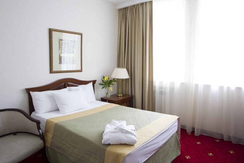 Президентский номер: площадь 58,3 м2, гостиная, спальня, выход на балкон, рабочий стол, диван, 2 кресла, видеоплейер, ванная, халат и тапочки, набор для бритья, зубная щетка и паста.