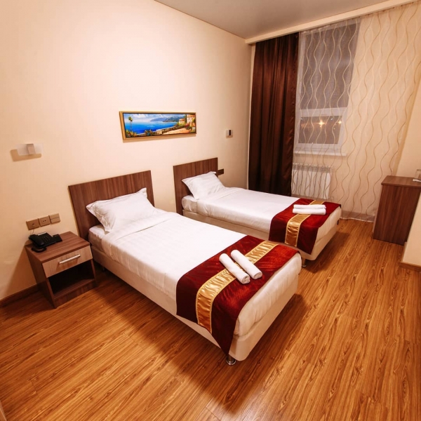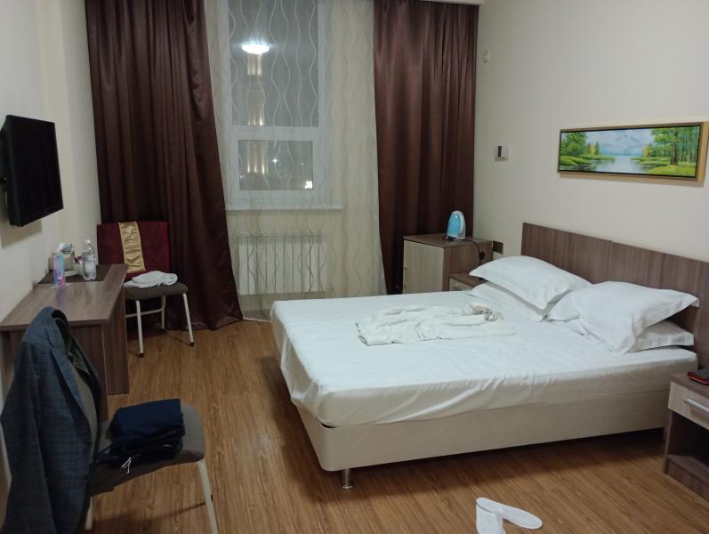 Посетил сегодня данную гостиницу уже второй раз, за 12 часов прибывания отдал 11000 тс.тенге. Скажу так, за эти деньги результатом я доволен! Приятный сотрудник на ресепшн объяснил правила въезда и ценовую политику. На этаже где я находился приятно пахло благовониями также и в номере. Номер уютный чистый, есть полный комплект временного пребывания. Подушки чистые, матрас чистый. Красивая уборная комната с душевой и феном. Также есть на 1м этаже кафе где можно очень вкусно поесть, цены за 1 и 2 + лепешка и кофе отдал 5 тс. тенге. Обслуживающему персоналу кафе нужно громче сообщать о своем заказе могут чего нибудь недодать, но в счёт не впишут. Так понимаю из-за громкой музыки в зале. Из минусов могу выделить отсутствие vip номеров, в номере где я был ранее в 1 й раз поддувало из окна, была порвана уплотнительная резинка. На входе не увидел возможности подняться людям с ограниченными возможностями. Личная субъективная оценка 4 из 5