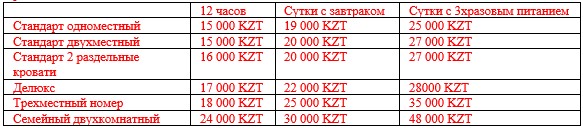 Здравствуйте, Арай. Номер в сутки 13 000 тг.