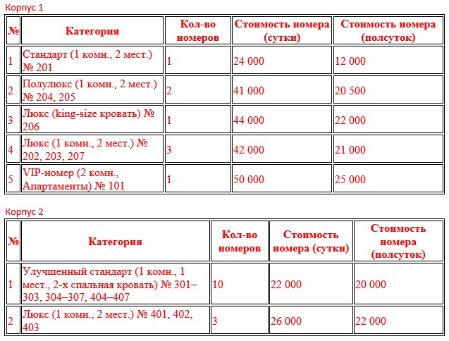 В отеле имеется 1 номер класса VIP и 6 номеров класса люкс и полулюкс в виде мансардных комнат.