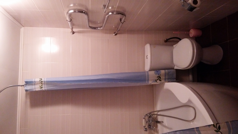 Есть также сомнения в чистоте. Почему сомнения ? Унитаз, ванна и раковина на вид чистые, а волоски по углам пола тоже есть. В комнате на полу ковролин, по углам - пыль. На шторах пятно. Его видно утром, когда солнце проходит сквозь шторы.